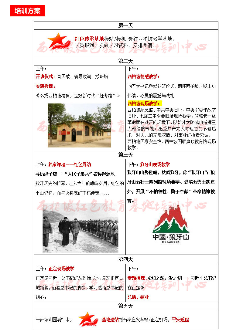 6天培训方案二(西柏坡、狼牙